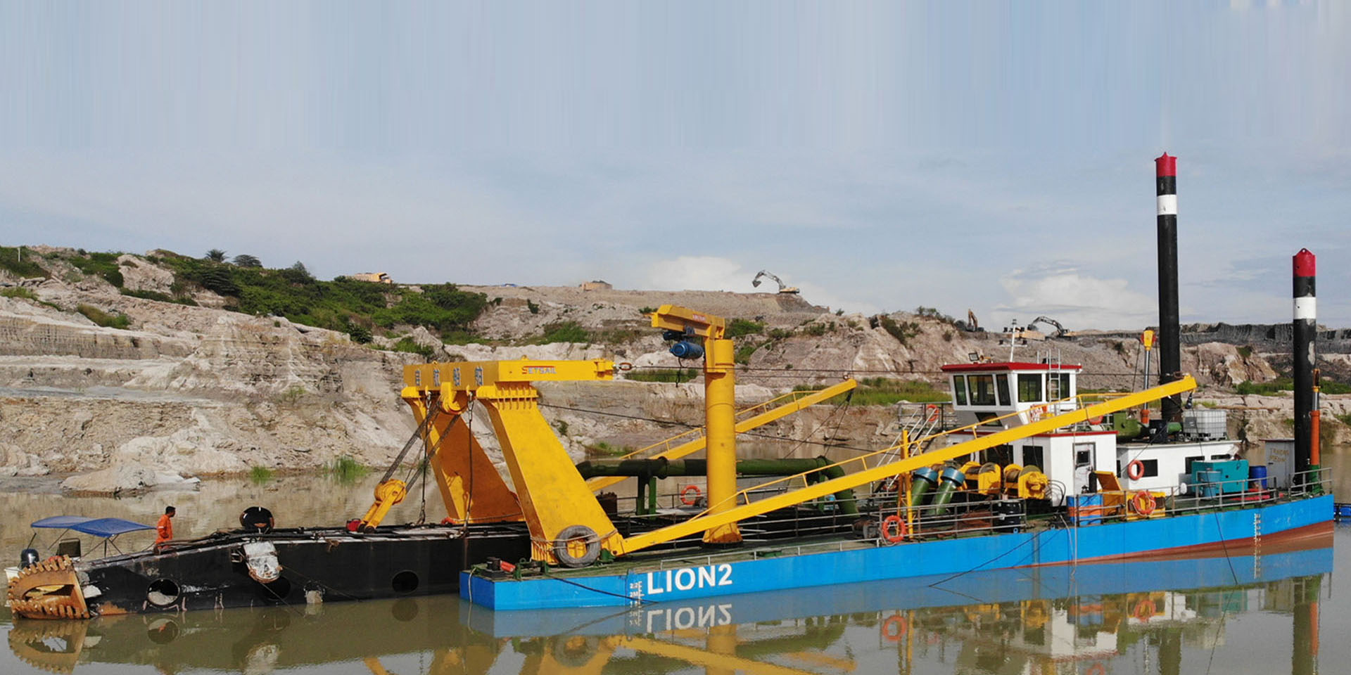 濰坊東洋??浦毓そㄔ斓?000流量全電動水下泵絞吸船服務(wù)馬來西亞錫礦治理項目現(xiàn)場